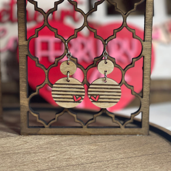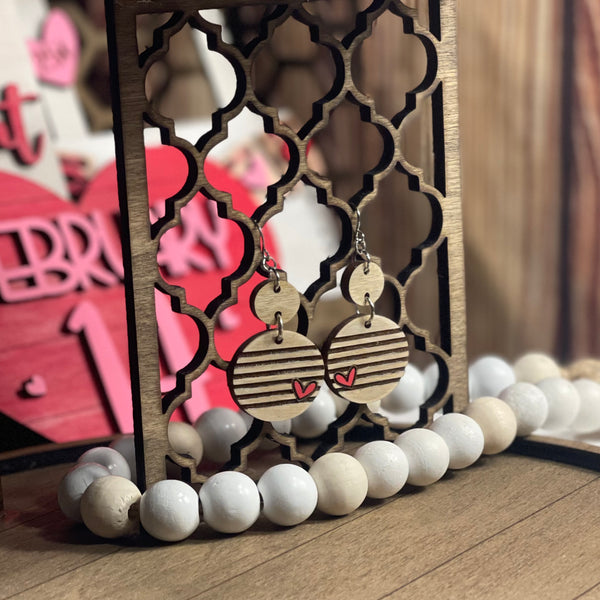 -Laser Cut/Engraved Maple Wood Hand Stained With Dark Walnut. Top Layer Has Been Hand Painted With A Chalk Paint Called "Sheepskin." Sanded To Blend The Colors. Hand Painted Red Heart.
